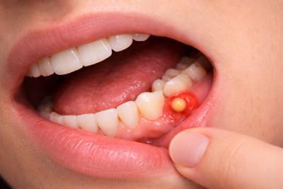 - Si une poche purulente est localisée dans la gencive, une petite incision peut être réalisée au point approprié.